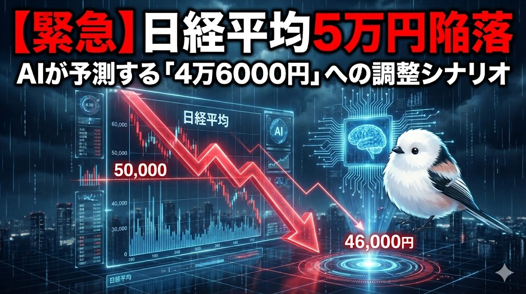 ついに5万円の大台にタッチした日経平均。しかし、その熱狂も束の間、足元では4万8000円台まで急落し、市場には不穏な空気が漂っています。「単なる調整か?」「バブル崩壊の始まりか?」迷える投資家に対し、感情を持たないAI(人工知能)が弾き出した答えは「まだ下がある」でした。本記事では、AIが警告する「戻り売り」の危険性と、次に狙うべき4万6000円台というターゲット価格について、最新データを元に解説します。